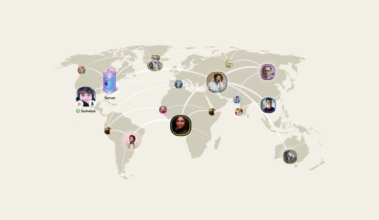 2. サーバーはパススルーおよび一種のディストリビューターとして機能し、このオーディオフィードを部屋にいるすべての人に送信します。
