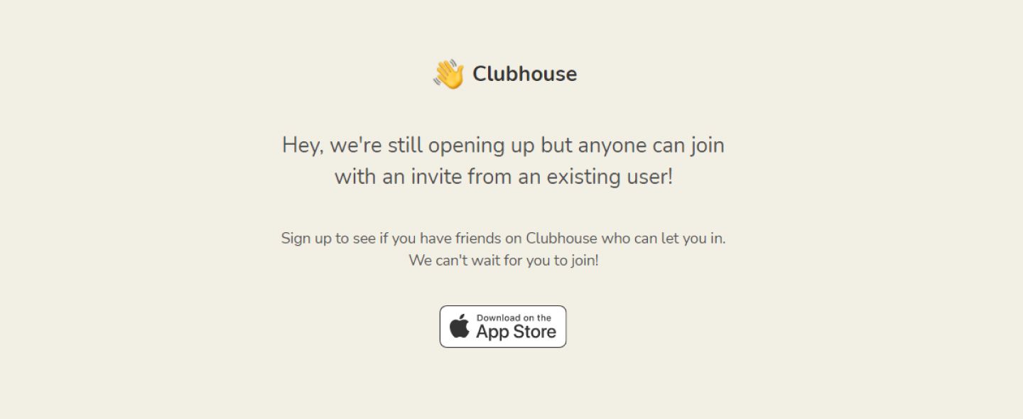 Clubhouse自体はまだ完全な製品ではありません。これは、Webサイトほど多くないことから明らかです。現在、ランディングページは実質的にむき出しで、Apple AppStoreへのリンクしかありません。