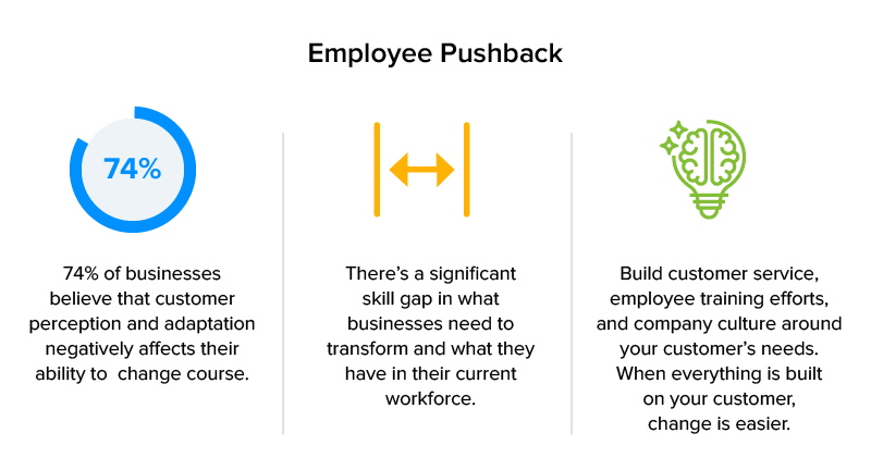 デジタルの近代化に対する重大な障壁の1つは、ビジネスの継続性を維持しながらシステムを置き換えるという課題です。 強力な顧客基盤を構築し、従業員に最新の技術スキルを与えるには、稼働時間を増やし、デジタルトランスフォーメーションのメンテナンスに従って、ビジネスにデジタルおよびITトランスフォーメーション戦略を導入する必要があります。 企業がデジタルトランスフォーメーションの課題を克服し、デジタルビジネストランスフォーメーション戦略を採用する方法を見てみましょう。