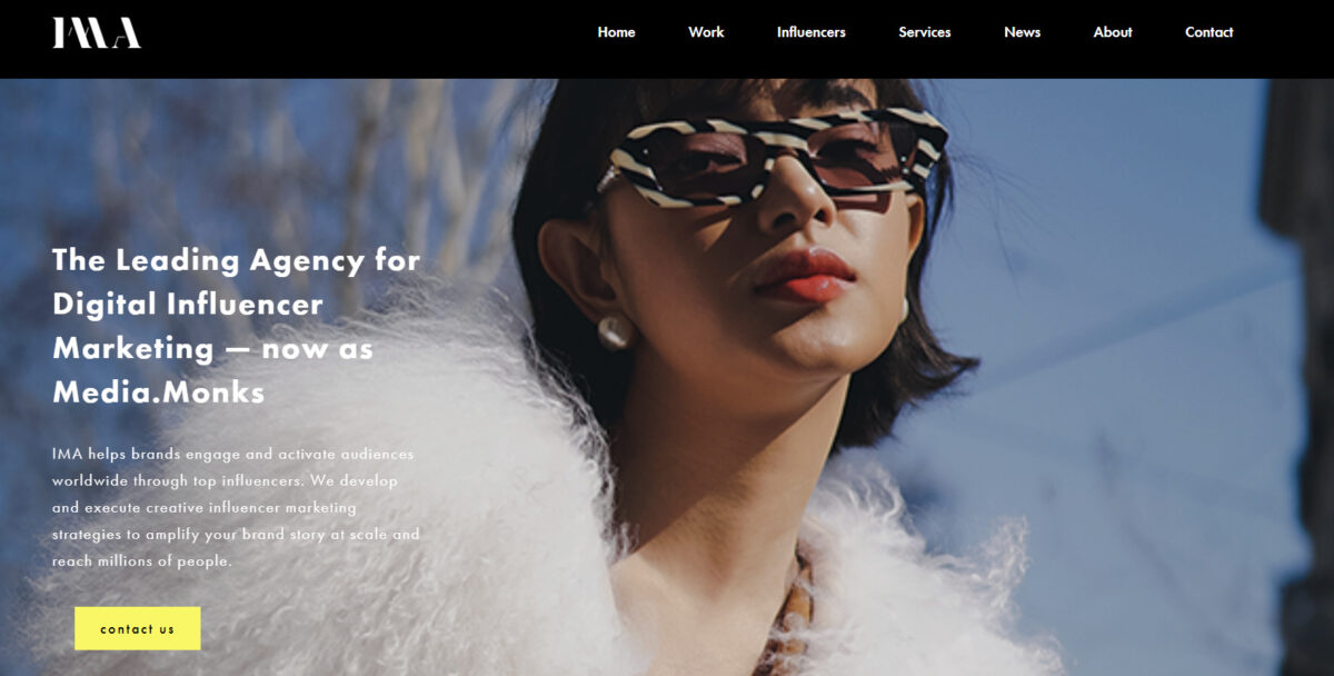 IMA は、デジタル インフルエンサー マーケティングの世界をリードする企業です。 数十年の経験を持つ同社は、インフルエンサー マーケティング運動の先駆者となり、トップ インフルエンサーを通じて世界中の視聴者を魅了し、活性化させたいと考えているブランドにとって頼りになる代理店となっています。 彼らの専門知識は、オーダーメイドの戦略を開発し、ブランドのストーリーを大規模に拡大し、何百万もの人々にリーチする創造的なインフルエンサー マーケティング キャンペーンの実行にあります。
