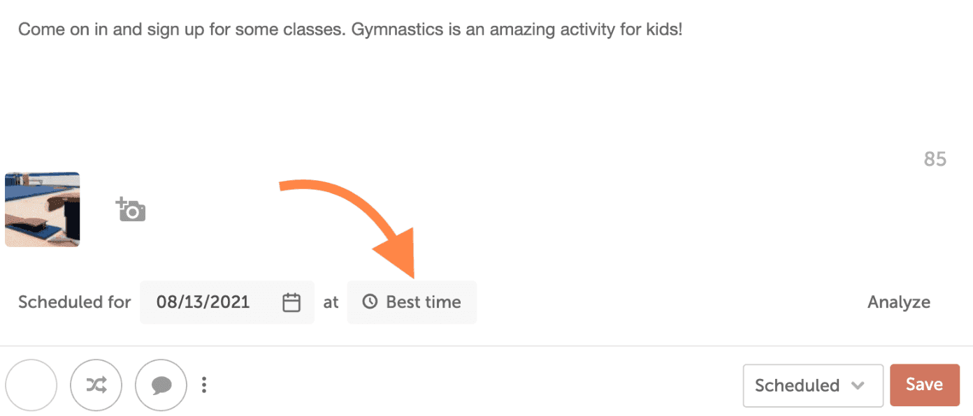 CoSchedule のベスト タイム スケジューリング機能は、調査に基づいて最適な時間に投稿をスケジュールし、労力を節約します。