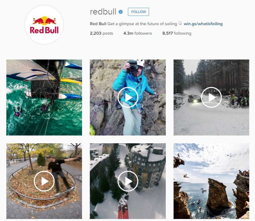 Instagramを早期に採用したRedBullは、プラットフォームを使用して、死に挑むスタントをフィーチャーした見事な写真と革新的なビデオコンテンツで、アドレナリンを燃料とする高オクタンのブランドイメージを強化しています。