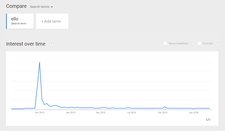 Elloは2014年9月/ 10月の数週間で最もホットなものでしたが、それ以来、「反Facebook」ソーシャルネットワークへの関心は決定的に薄れてきました。