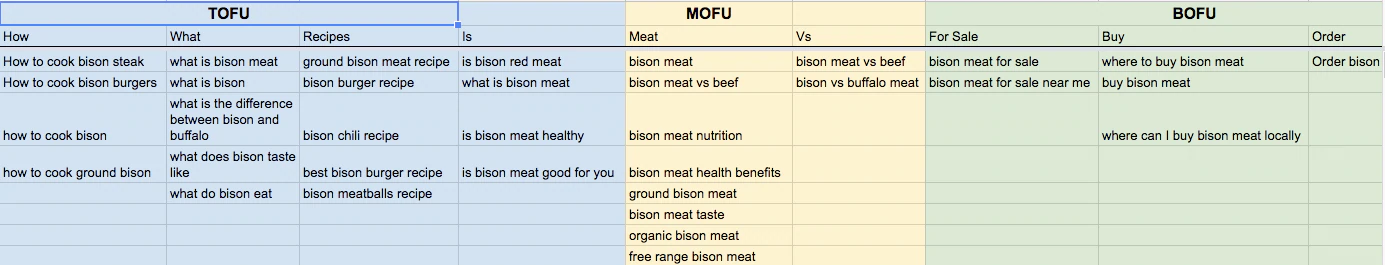 今度はカレンダーを作成して、ゴムを使ってこのコンテンツを公開し、ターゲットキーワードのランキングを開始できるようにします。 これを行うには、キーワードファイル全体に追加のシートを作成し、目標到達プロセスの段階ごとに(検索の意図に基づいて)レイアウトすると便利です。