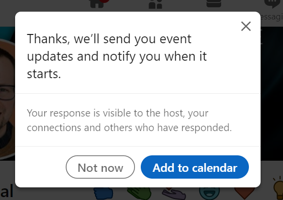 そういえば、視聴者が計画して登録するための十分な時間を与えるようにしてください。 LinkedIn は、ライブ イベントの通知とカレンダー スロットを提供することで、いくつかの作業を行います。 メーリング リストがある場合は、そこでも自分の存在を宣伝してください。