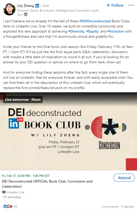 ただし、デフォルトでは、LinkedIn Live プレゼンテーションの視聴は保証されていません。 これは、確立された聴衆がいる場合でも当てはまります。 以下に、従うべきいくつかのベスト プラクティスを示します。