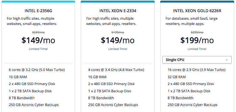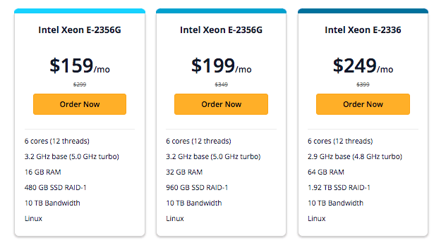 A. Intel Xeon E-2356G –このプランは月額 159 ドルで、次の機能を提供します。