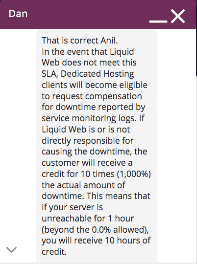 Liquid Web ホスティングは、サービス レベル アグリーメントによる専用ホスティング プランで 100% 保証された稼働時間を提供します。