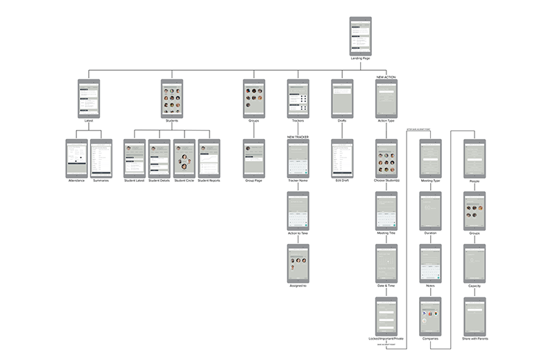 最後のUX成果物は、設計作業の結果として機能するUI設計方法論の重要な部分でもあり、サイトマップです。 これは主に、アプリケーションのナビゲーションと階層構造を示しています。これは、コンテンツがセクションまたは画面にどのように編成されるかに関する情報を提供するのに役立ちます。
