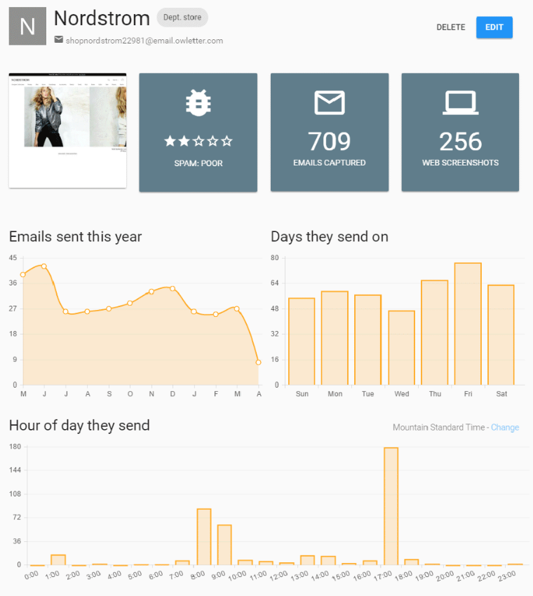 一方、Owletterのようなツールを使用すると、競合するブランド間の頻度や送信タイミングなどの指標を監視できます。