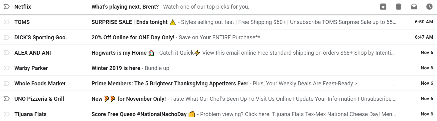 業界や競合他社の電子メールを調べることは、あなたの市場についてもっと知るための素晴らしい方法です。 たとえば、競合他社はどのような種類のオファーや取引を実行していますか? 彼らはどのくらいの頻度でメールを送信していますか?
