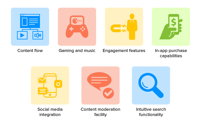 モバイルエンターテインメントアプリがメディアおよびエンターテインメント業界と人気のあるエンターテインメントアプリにとって正しい動きとなる理由を調べたので、次に、さまざまなタイプのエンターテインメント業界の既存のすべてに存在する機能セットを調べてみましょう。