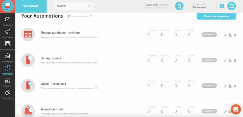 オーディエンスのニーズに合わせてカスタマイズされた自動化シーケンスを作成することで、顧客の旅のアイデアを得ることができます。 言うまでもなく、それはあなたの業界のニーズにも完全に適合します。 結局のところ、eコマースストアにはフリーランサーとは異なるニーズとKPIがあります。