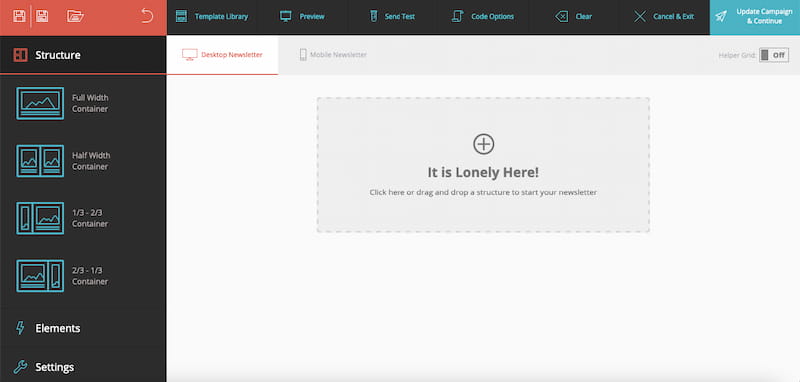 このメールビルダーは、HTMLコードの知識がまったく必要ないため、初心者にも上級者にも簡単に使用できます。
