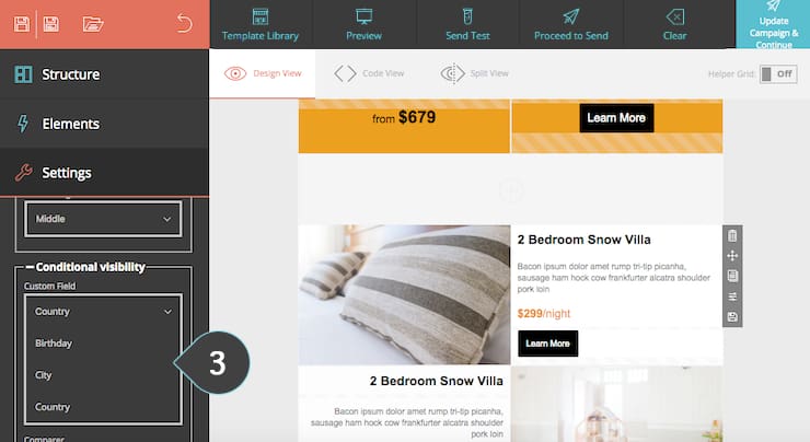 「条件付き可視性」機能を使用して、サブスクライバーが表示できるコンテンツを変更します。 これは、各受信者に固有のコンテンツを表示する条件を設定し、動的な電子メールを作成することを意味します。 データを使用し、適切な写真を選び、適切な条件を設定して、サブスクライバーを引き付けます。