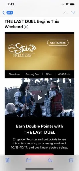 この AMC シアターズからのメールのように、メール リストのさまざまなセグメントにアピールするパーソナライズされたコンテンツをメッセージに含める必要があります。