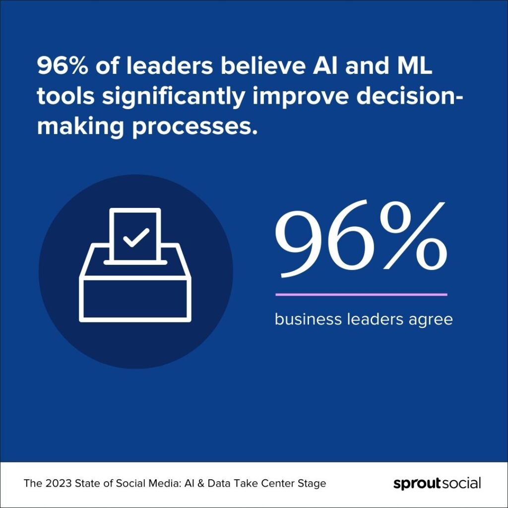 The State of Social Media Report 2023 によると、リーダーの 96% が AI および ML ツールが意思決定プロセスを大幅に改善すると信じています。 NLP はこれらのツールを強化するものです。