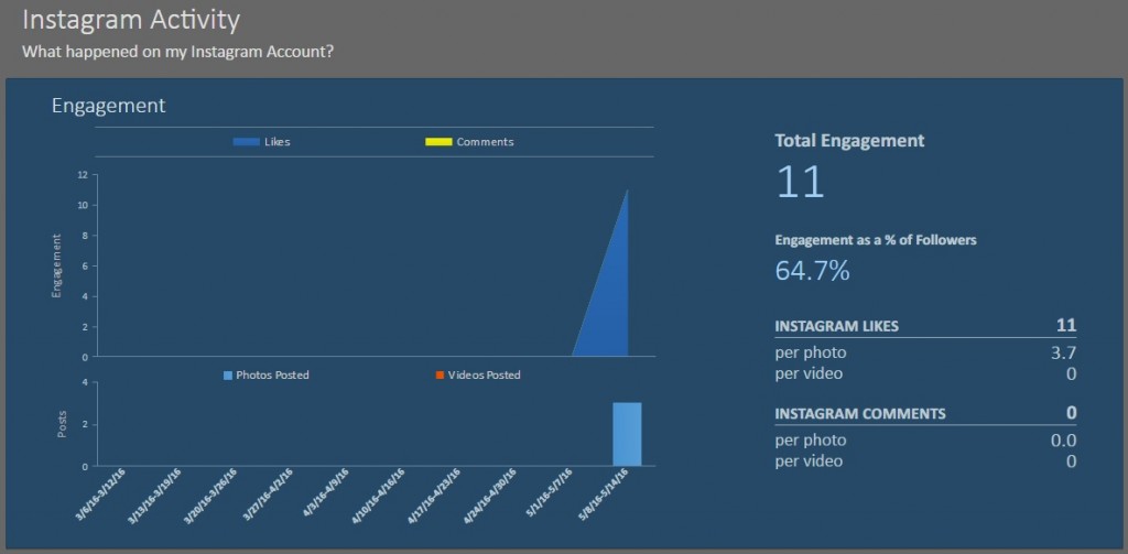 フープジャンプは、特にいくつかの異なるレポートが必要な場合は少し面倒ですが、それは無料のランチの価格です。 レポートには、提供する価値のある洞察がいくつかあります。特に、Instagramの「フォロワーの割合としてのエンゲージメント」統計が気に入っています。これは、アカウントがエンゲージメントの可能性を満たしている(または超えている)かどうか、およびコメントキーワード分析を示しています。 Google+の場合。