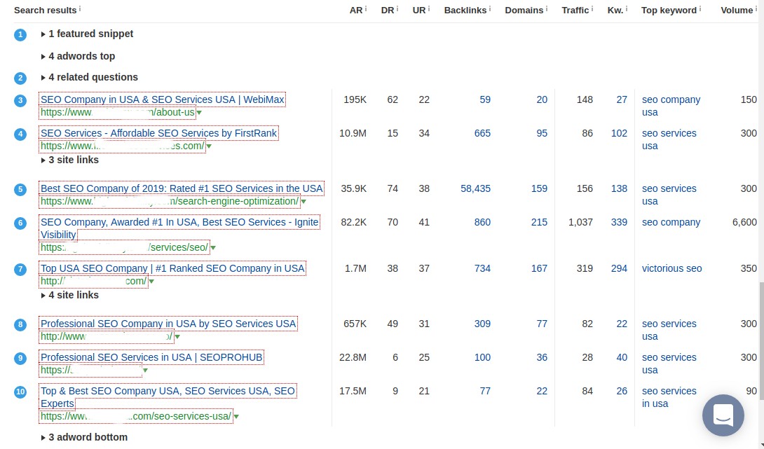 Googleで「SEOservicesin USA」を検索すると、次のような例が表示されます。 結果を分析すると、最高のSEO企業、SEOサービス、SEOランキングなどの結果が示されていることがわかります。