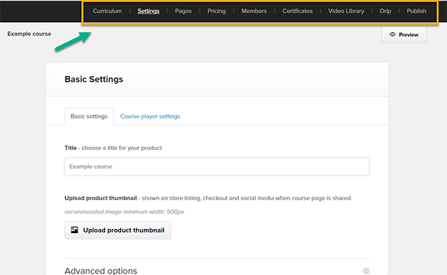 コースを作成したら、学習者の管理、コース ページのカスタマイズ、価格設定、ドリップ スケジュールと証明書の設定など、ページ上部のタブから行う必要があるその他すべての作業を行うことができます。