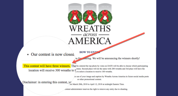 これは、3人の勝者がいるWreaths ofAmericaが運営するコンテストです。