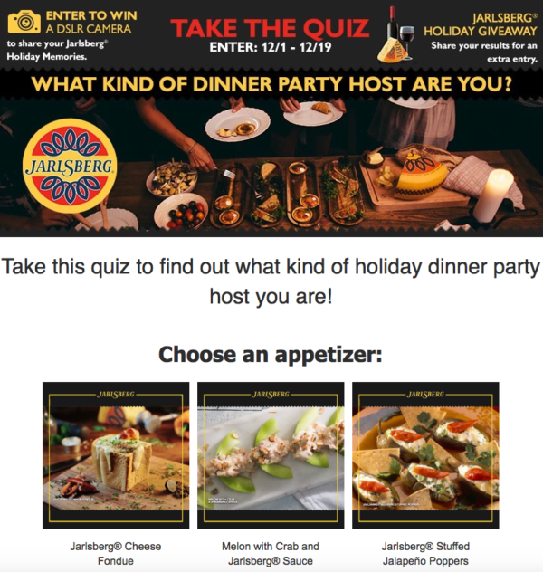 以下のチーズ生産者であるヤールスバーグのコンテストでは、クイズを使用して人々をコンテストに参加させます。