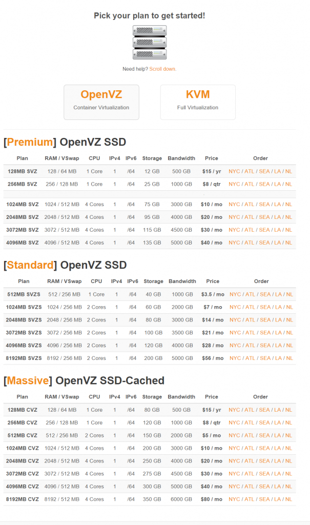 RamNode のサービスは、シアトル、ルイジアナ州、ニューヨーク市、およびオランダに分散しています。 これらの場所はすべて、世界中の顧客にサービスを提供できるように戦略的に選択されています。 また、すべてのサービスで Raid 10 SSD または SSD キャッシュ アレイ、サーバーを管理する SolusVM、任意の VPS に加えて月額 3 ドルでオプションの DDoS 保護 IP など、多くの優れた機能を提供します。
