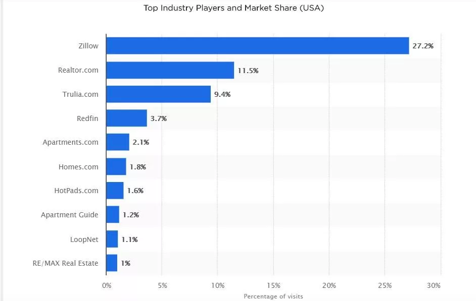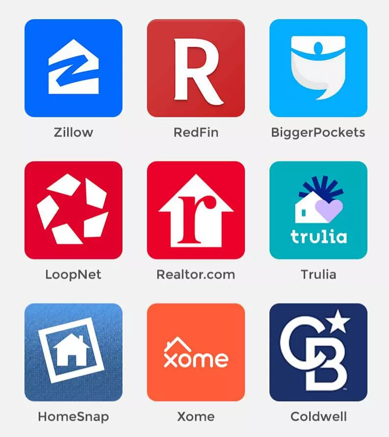 Zillow、Redfin、BiggerPockets、LoopNet、Realtor.com、Trulia、HomeSnap、Xome、Coldwell