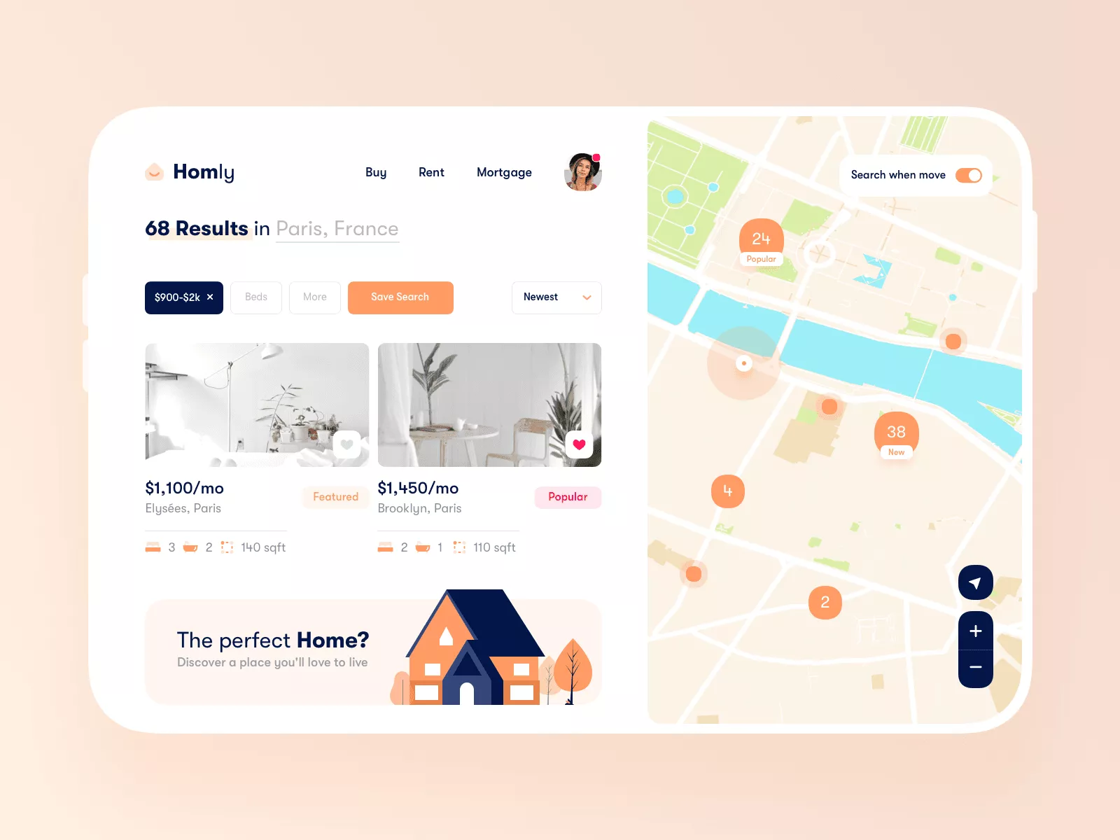 高解像度の画像を使用して物件をより適切に表示することにより、ユーザーに高品質のエクスペリエンスを提供します。 カスタム検索の絞り込み