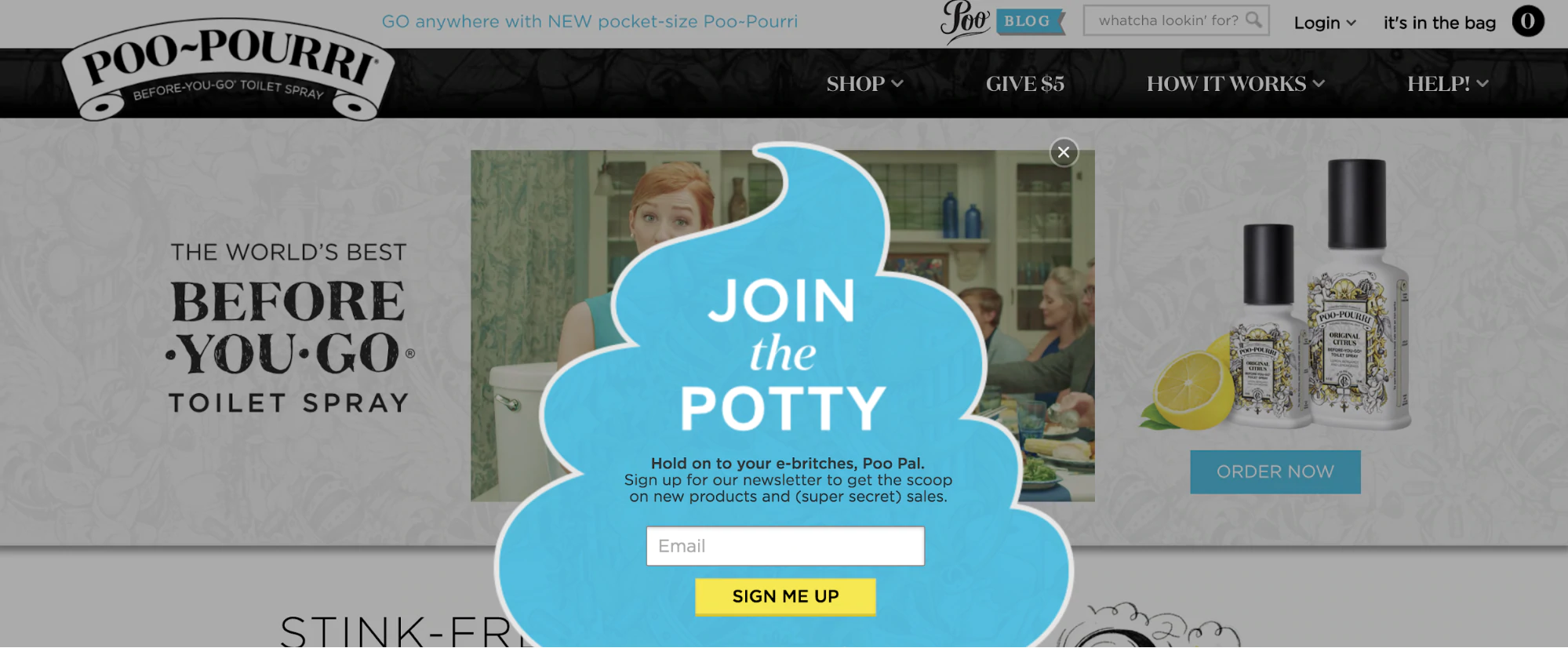 予期しないことが発生すると、システム1がループになります。つまり、システム2が呼び出されます。 たとえば、Poo-Pourriに初めてアクセスしたときに表示される終了インテントポップアップは次のとおりです。