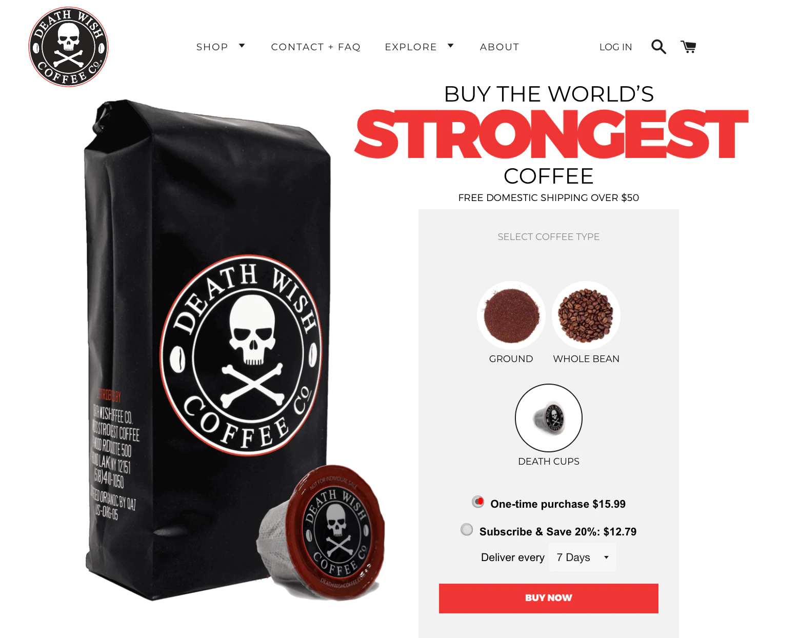 たとえば、Death Wish Coffeeは、購入者にいくつかの異なる選択肢を提示します。