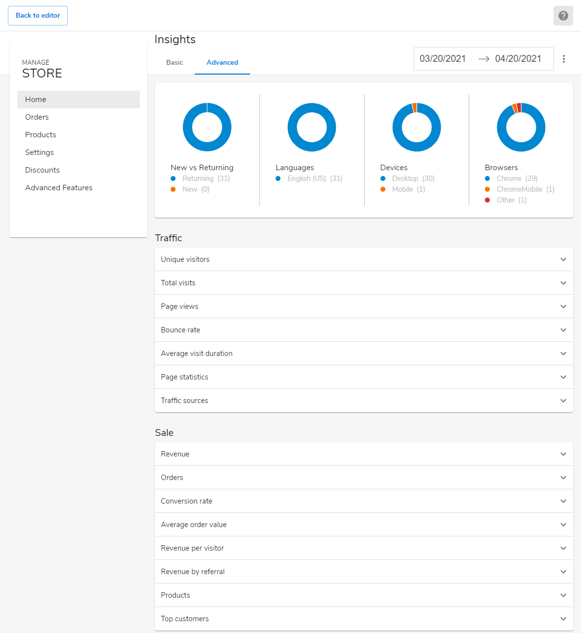 インターネットで販売する場合、マーケティング活動がどのように機能しているかを簡単に確認できます。 ほとんどの販売プラットフォームには、トランザクションあたりのユニット数や平均注文額から徴収した税金まで、すべてを確認するために使用できる販売分析が統合されています。 また、販売の核心に迫りたい場合は、他のプラットフォームやアプリケーションを統合して、より詳細な情報を取得できます。