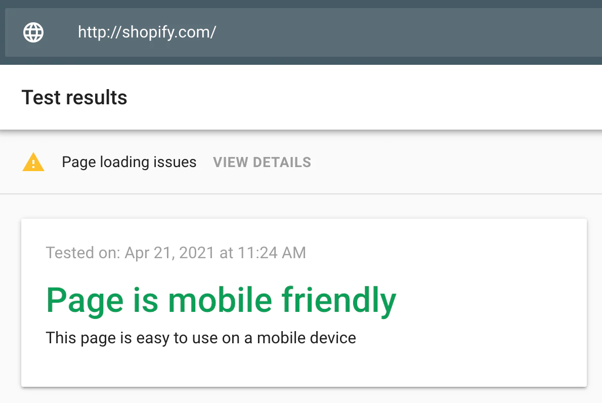 モバイルでサイトを確認します。 Shopifyテーマストアのすべてのテーマはモバイルフレンドリーですが、Shopifyを使用していない場合は、このツールを使用してモバイルデバイスでどのように表示されるかを確認してください。 すべてのページは、デスクトップと同じようにモバイルでも読みやすくする必要があります。
