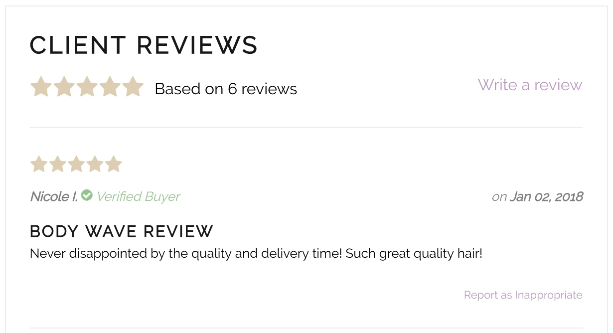 商品ページに商品レビューを追加することを検討してください。 買い物客の95%は、購入する前にレビューを読んでいます。これは、信頼を築くために不可欠です。 ただし、商品レビューでは、商品ページに関連する追加のコンテンツも提供されるため、ロングテールキーワードのランク付けに役立ちます。 Shopifyによって開発された無料アプリであるProductReviewsをインストールして、SEOに適したレビュースコアを製品ページに追加できます。 私はすべての製品ページでそれを使用しています。