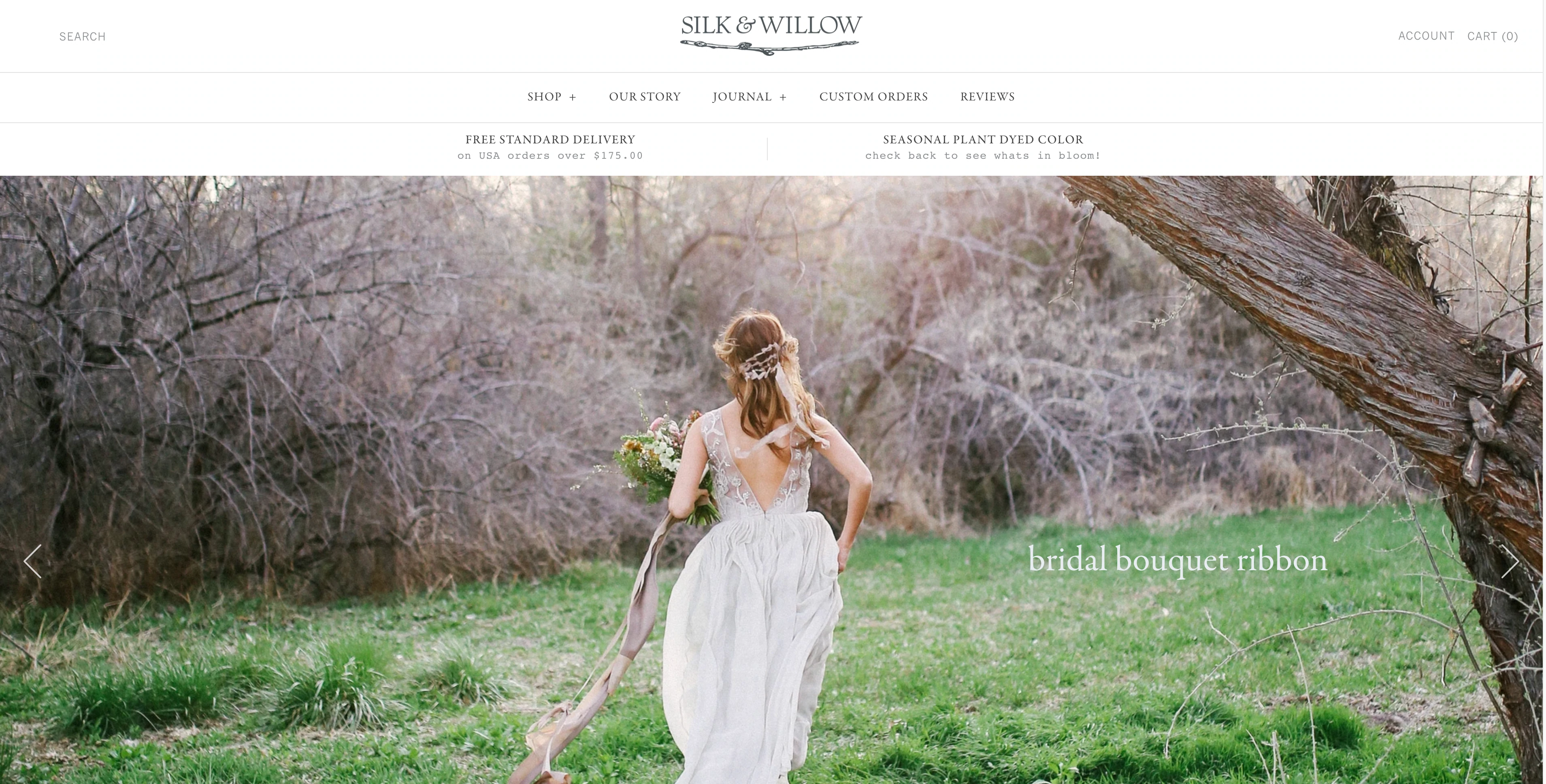 Silk and Willowは、環境に配慮したデザインの持続可能な結婚式の装飾ブティックです。 創設者のShelliePomeryは、天然染料を使った生地の作成を呼びかける前に、グラフィックデザイナーとしてのキャリアを開始しました。 Silk and Willowは、植物で染めたシルクリボン、テーブルリネン、手作りの文房具を運び、結婚式の計画に関連するそれぞれの美しいディテールの中で迷子になる場所です。