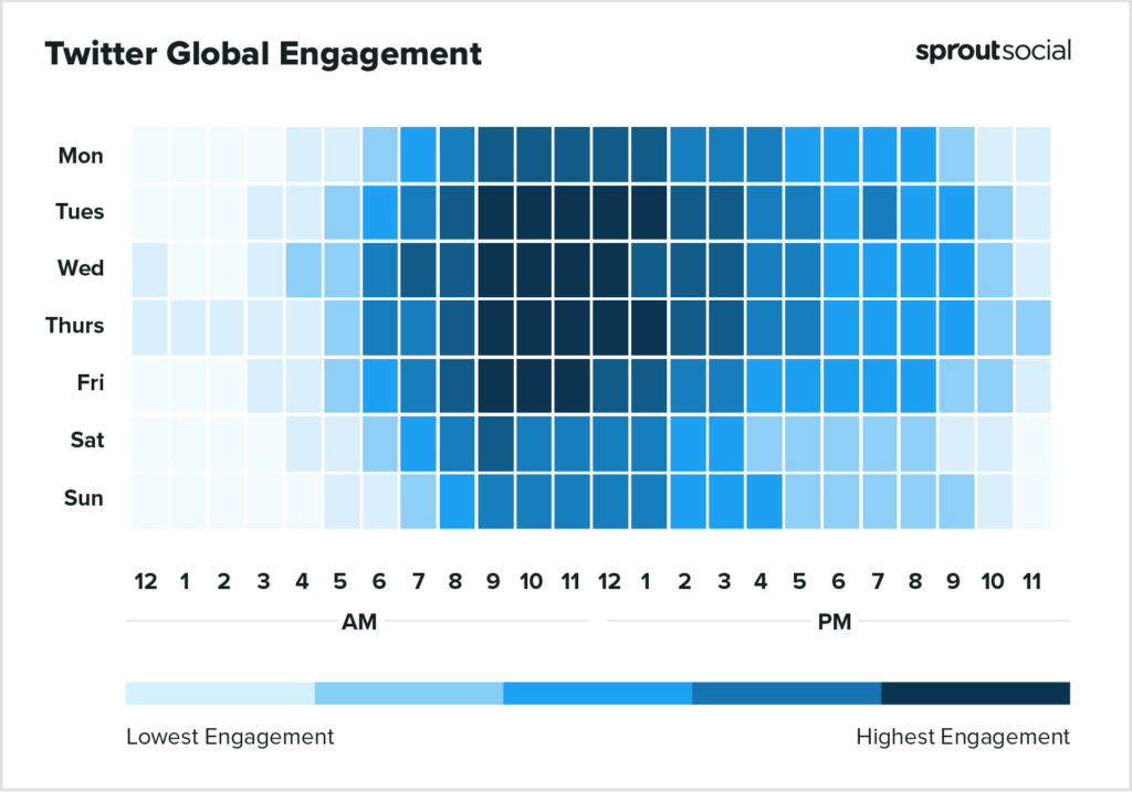 Sprout Social データに基づく、2023 年に世界中で Twitter に投稿するのに最適な時期を示すヒートマップ