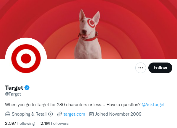ターゲットの Twitter バイオは、このテンプレートをうまく使用しています。