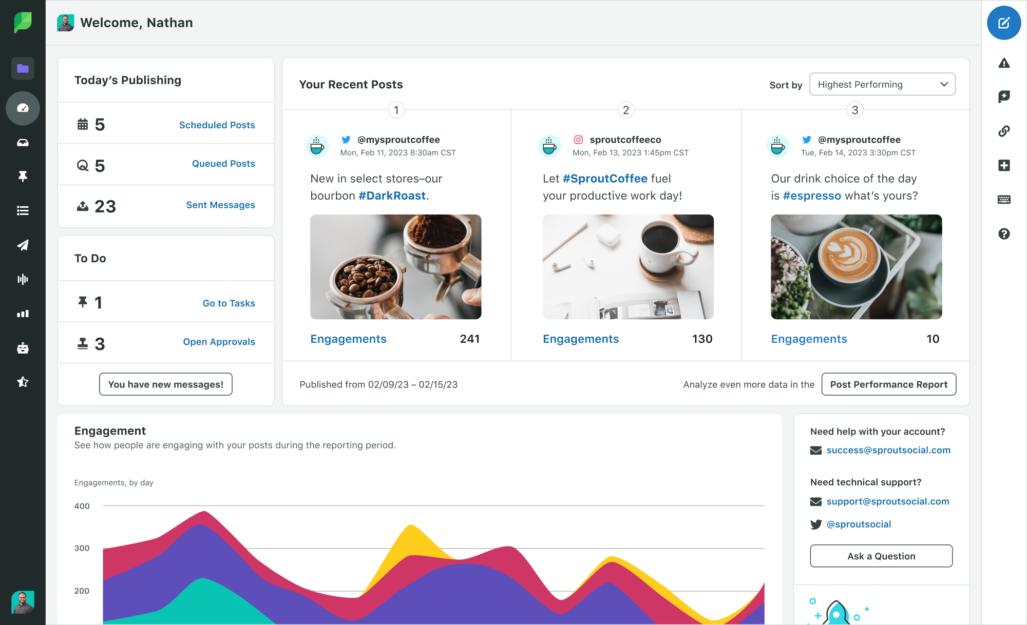 - 分析: Sprout の組み込み分析とプレミアム分析により、データ収集とレポートの高速化と自動化が可能になり、ステークホルダー、同僚、クライアントなどに対してソーシャルの価値を最大限に説明できます。 投稿レベルでのパフォーマンスに焦点を当てたり、ズームアウトして全体的な影響に焦点を当てたり、誰もが理解できる定期的なカスタマイズ可能なレポートを簡単に共有したりできます。