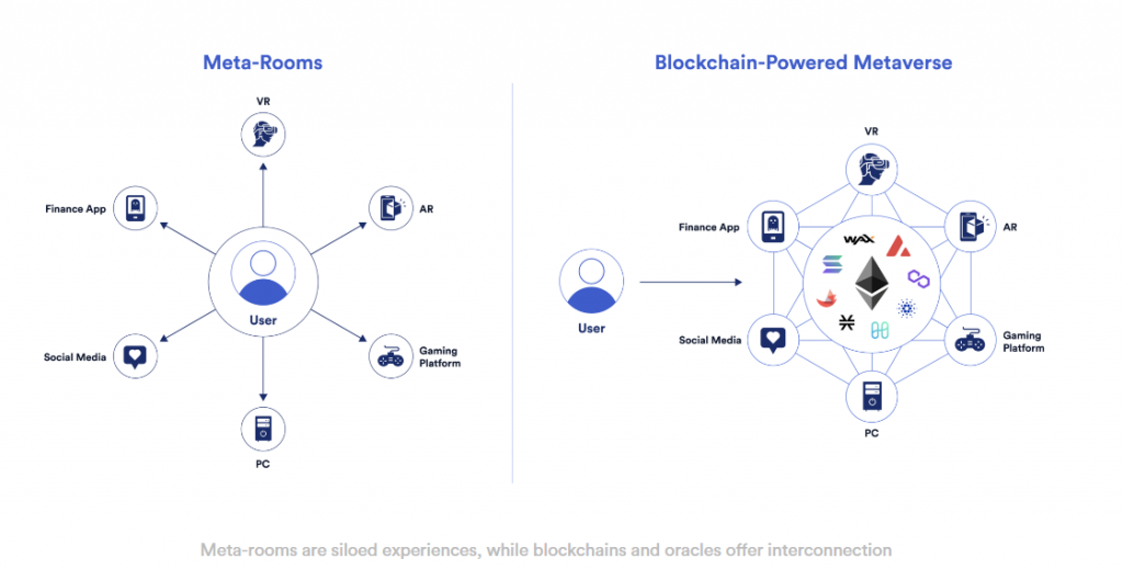 シームレスなエクスペリエンスを提供する仮想世界を作成するには、相互運用可能なエクスペリエンスのネットワークとしてのメタバースのマシューボールの定義に戻る必要があります。 完全に実現されたメタバースでは、断片化されたエコシステムがブリッジされて、個々のコンポーネントまたはアスペクトの相互運用によって特徴付けられる1つの仮想環境が作成されます。