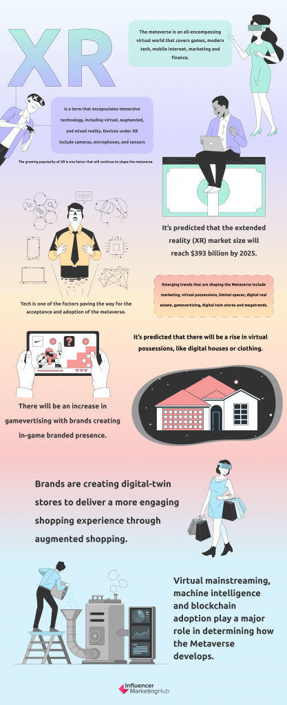 メタバースをそれが何であるかを作るものは何ですか? テクノロジーと社会のトレンドは、メタバースの将来のバージョンを形作る上でどのように役割を果たしますか? この新しい世界が発展し続けるにつれて、どのような傾向が出てきますか? メタバースによって形成され、影響を受けているトレンドのいくつかを見てみましょう。