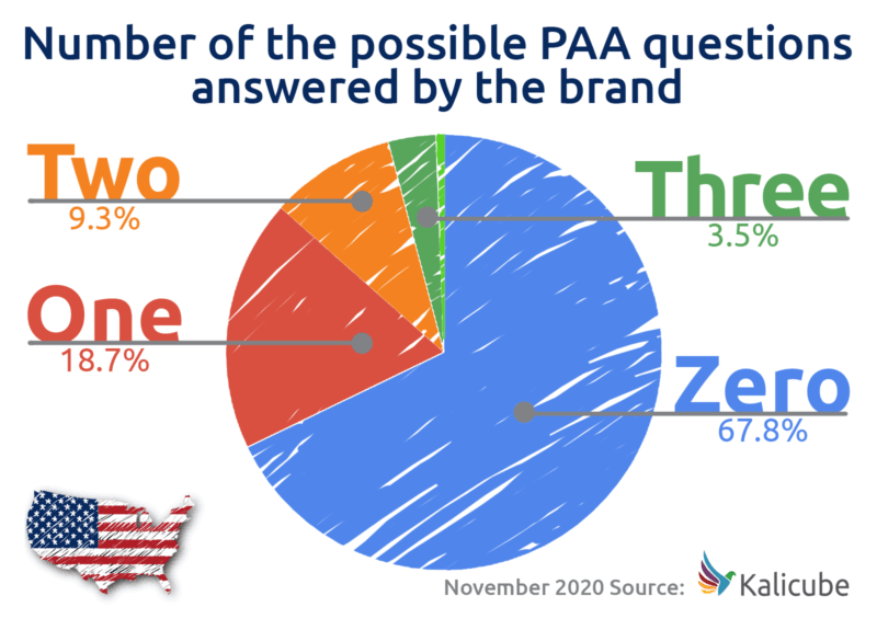 なぜPAAはデジタル戦略の一部でなければならないのか。 PAAが対処する必要のあるものであることに気付いたブランドはほとんどないようです。 Kalicubeが提供する数字は、大多数のブランドがブランド戦略のこの側面を理解できていないことを明確に示しています。