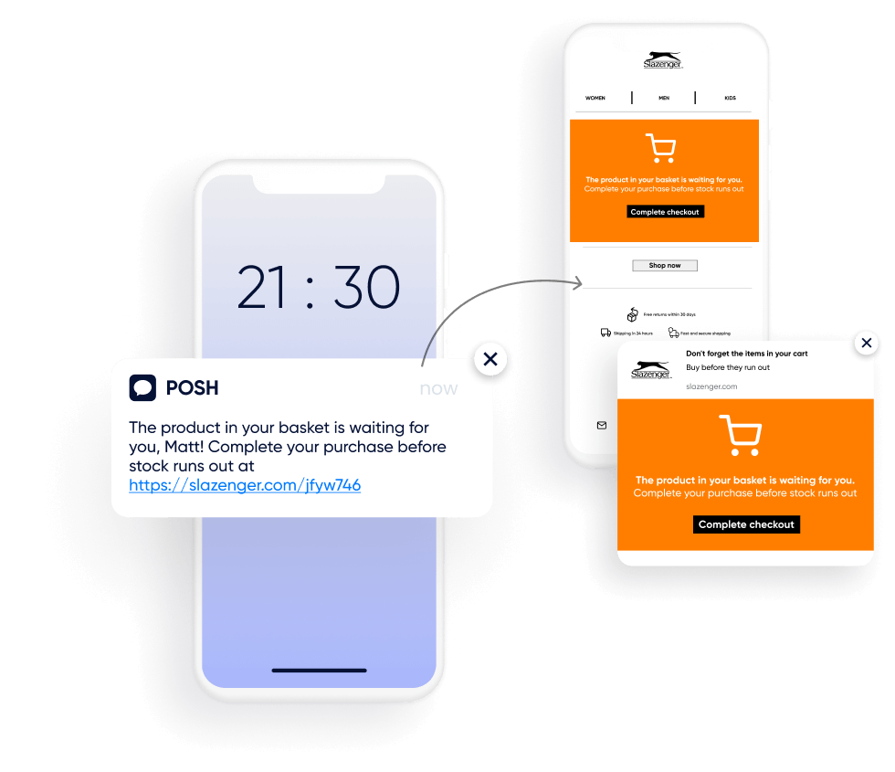 Slazenger は、コンバージョンを高めるためにカート放棄率を改善しようとしていました。 世界をリードするスポーツ ブランドは、 SMSを通じて顧客を引き付けるために、強力でパーソナライズされた状況に応じたメッセージを作成しました。 Web プッシュと電子メール。 Insider は、データを統合し、複数のチャネルにわたって AI とパーソナライゼーションを組み合わせることで、Slazenger がカート放棄者を再エンゲージし、購入を完了するよう促すのを支援しました。