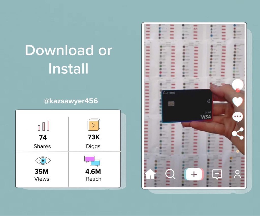 ダウンロードまたはインストールカテゴリのトップビデオは@kazsasawyer456によるものです。 これは、銀行テクノロジーブランドであるCurrentによって後援されました。 ビデオは3500万回の視聴7万3千回の掘り出し物を集めました。