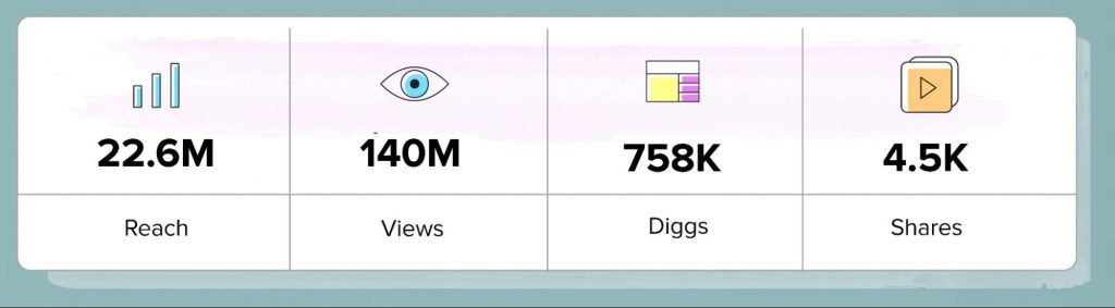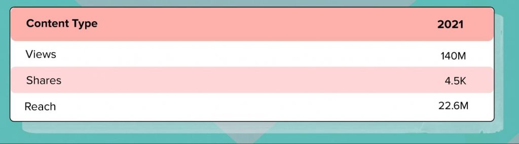 2021年に、TikTokの対象となるスポンサー動画は、プラットフォーム上の10.3億人を超えるユーザーに到達しました。 これらの動画は合計13億回の再生回数を記録し、動画あたりの平均再生回数は約508k回でした。 TikTokでのインフルエンサーマーケティングが達成することが証明された高いリーチとビュー数に加えて、それはまた高いエンゲージメントを生み出します。 これは、掘り出し物、コメント、共有を含む2021年の合計6,140万件のエンゲージメントを通じて見ることができます