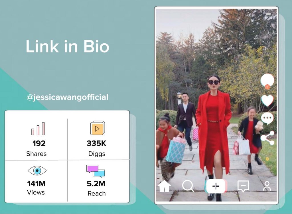 Link in Bioの召喚状を使用したすべての動画の中で最もパフォーマンスの高い動画は、@jessicawangofficialによるものです。 このスポンサービデオはExpressと提携していました。 前に見たように、キャンペーンの目的はコンテスト/プレゼントでした。 この動画は、そのコンテストにつながったクリエイターの略歴のリンクにユーザーを直接誘導しました。