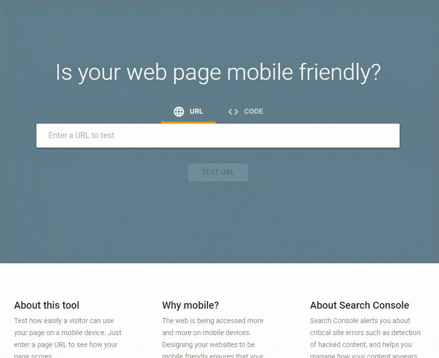 企業が自社のウェブサイトがモバイルフレンドリーかどうかを確認し、問題をタイムリーに修正できるように、Googleはここにあるモバイルフレンドリーチェックツールを設定しました。