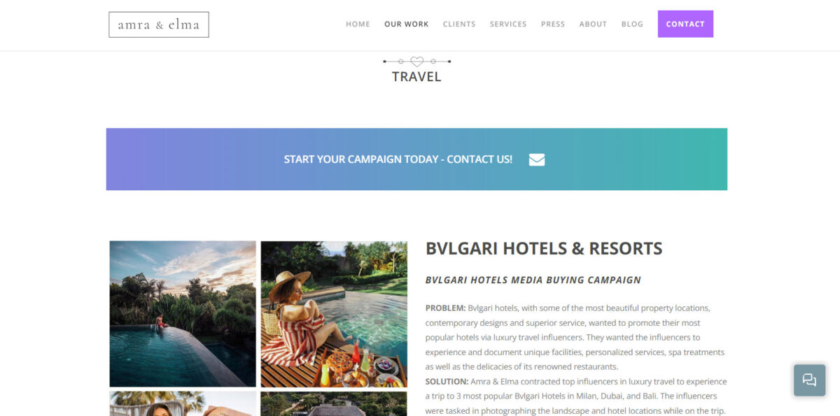 アムラ&エルマと関わるということは、本物のオーダーメイドの旅行インフルエンサー キャンペーンを通じて、ブランドと視聴者を結びつけることを意味します。 彼らは、ブランドのビジョンに沿ったインフルエンサーとのパートナーシップを構築することに優れており、一貫性のある説得力のある物語を保証します。 彼らの専門知識は、旅行体験の本質を捉えた、視覚的に素晴らしいユーザー生成コンテンツ (UGC)の作成にまで及びますストーリーテリングと視聴者エンゲージメントへの取り組みにより、旅行分野での存在感を高めようとしているブランドにとって好ましい選択肢となり、メッセージが現代の消費者の願望に確実に共鳴するようになります。