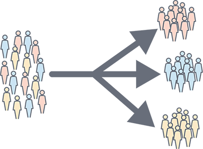 これが、メールのセグメンテーションのしくみです。 購読者リストは分割されているため、リストの全員に同じメッセージを送信するのではなく、各個人に関連するメッセージを送信できます。
