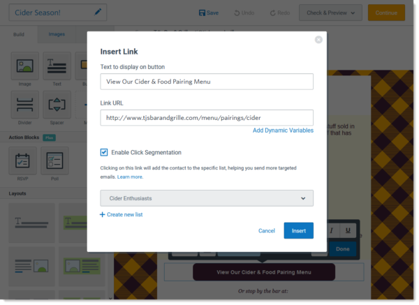 固定連絡先メールのリンクを使用して、組み込みのクリック セグメント化機能を使用してオーディエンスをセグメント化できます。