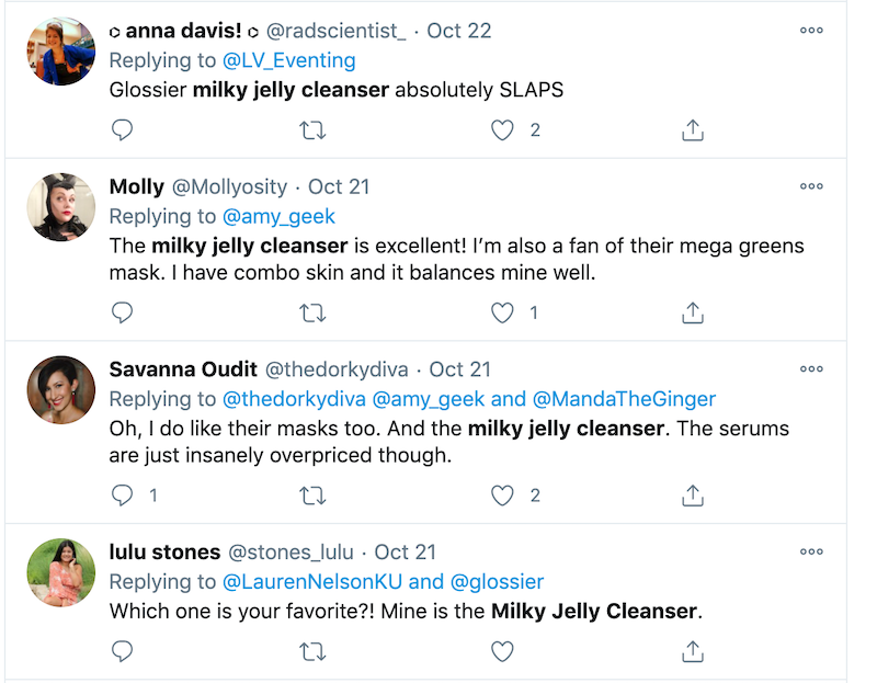 ブランドが新製品を発売する場合、それについて議論している投稿の量だけでなく、それらの言及が肯定的であるかどうか(これにより、将来のキャンペーンやユーザー生成コンテンツを刺激する可能性がある)、またはそれらが肯定的であるかどうかも知る必要があります。ネガティブなので、対処可能な問題を発見できます。 ツイートをすばやく閲覧すると、視聴者が製品について一般的にどのように感じているかがわかります。